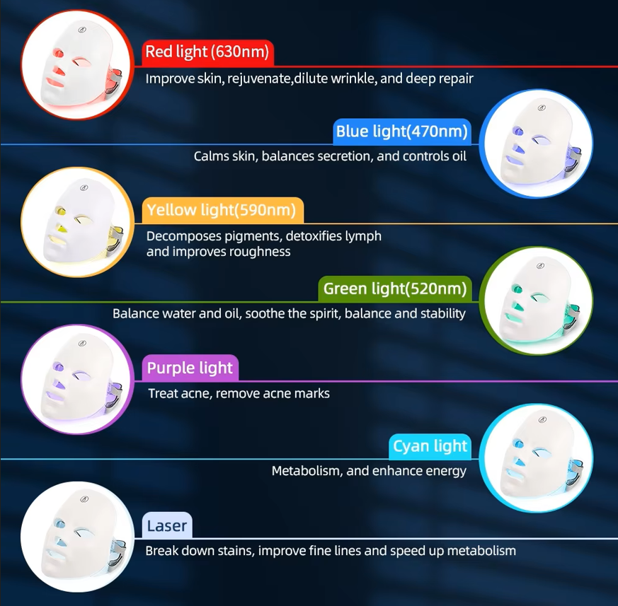 If you want a better mask effect, it is recommended that you also use professional related skin care products. LED lights will promote the absorption of skin care products and enhance the effectiveness of skin care products, then the effect is better.